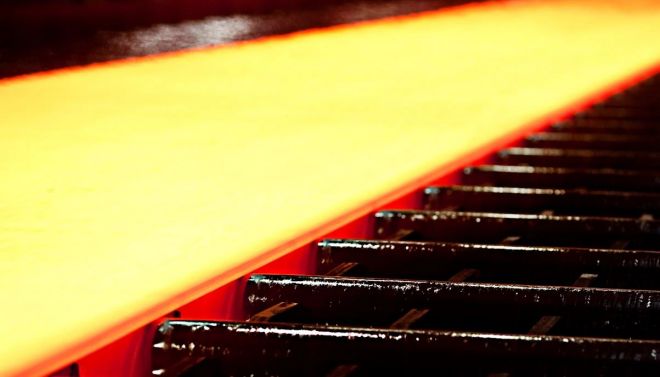 夜幕降臨,鞍鋼股份鲅魚圈鋼鐵分公司厚板部5500mm寬厚板生產線上火龍飛馳,各種機器設備的轟鳴聲交織在一起,共同奏響激昂壯闊的鋼鐵交響曲。