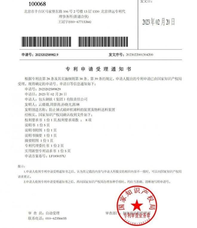 近日,包鋼股份化檢驗中心“防止錘式破碎機堵料的裝置及物料送料裝置”“一種汽車自動取樣車底高的檢測器”兩項創(chuàng)新成果榮獲國家知識產(chǎn)權(quán)局實用新型專利授權(quán)。