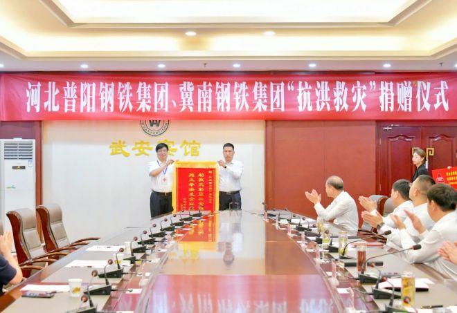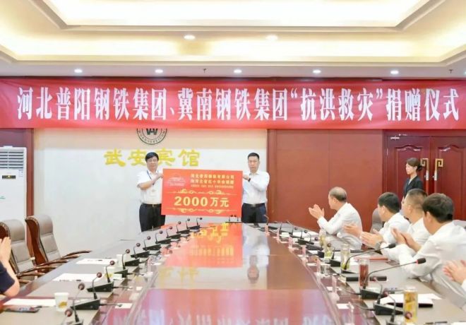 李林龍代表河北省紅十字會(huì)接受了普陽(yáng)鋼鐵集團(tuán)捐贈(zèng)的2000萬(wàn)元,并向河北普陽(yáng)鋼鐵有限公司授旗