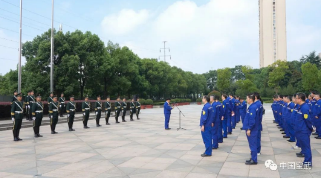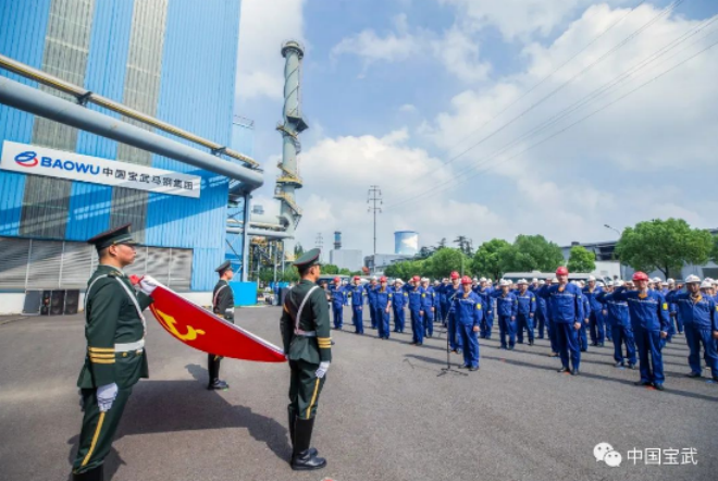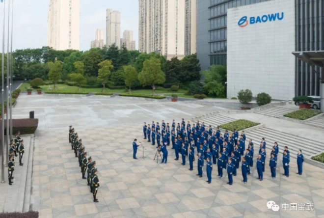 8時(shí)30分,升旗儀式舉行。在雄壯的國歌聲中,鮮艷的五星紅旗和寶武司旗、馬鋼司旗在燦爛的陽光下冉冉升起。