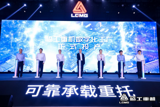 中國工程機械工業協會會長蘇子孟,濟南市委常委、高新區黨工委書記、管委會主任 孫 斌,濟南市工業和信息化局黨組書記、局長汲佩德,濟南高新區黨工委副書記、管委會常務副主任任廣鋒和臨工集團、臨工重機領導共同按下啟動柱,臨工重機數字化工廠正式揭幕投產。未來,臨工重機將以數字化激活引擎動力、激發創新活力,為全球化戰略提供強力支撐!