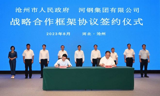 8月25日,河鋼與滄州市簽署推動區域經濟高質量發展戰略合作框架協議,這是雙方貫徹落實習近平總書記視察河北重要講話精神和黨中央、省委省政府決策部署的具體舉措。未來,雙方將在高端鋼鐵材料、港口物流、數字經濟、供應鏈金融、鋼鐵技術解決方案服務等方面深化合作,實現企地合作共贏。河鋼集團黨委書記、董事長于勇與滄州市委書記康彥民見證簽約,共同為河鋼滄州運營中心、滄州河鋼供應鏈管理有限公司揭牌。