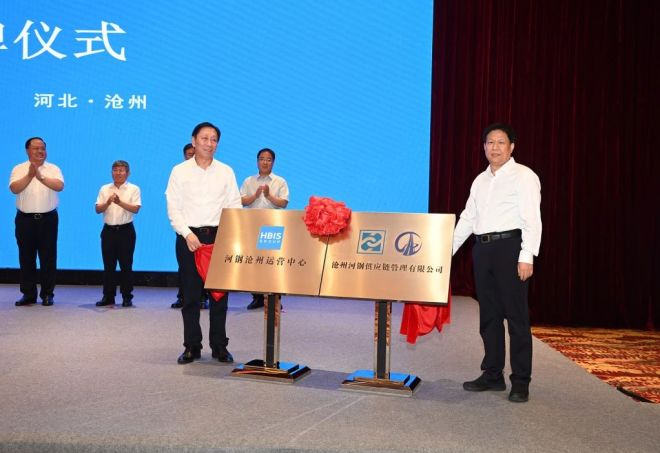 在熱烈的掌聲中,于勇、康彥民共同為河鋼滄州運營中心、滄州河鋼供應鏈管理有限公司揭牌。
