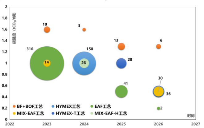 ■一是六種工藝組合協同推進,包括高爐轉爐長流程工藝(BF+BOF)、氫冶金電爐工藝(HYMEX)、全廢鋼電爐工藝(EAF)、混合電爐工藝(MIX-EAF)、氫冶金電爐生產汽車板組合工藝(HYMEX-T)和混合電爐生產汽車板組合工藝(MIX-EAF-H)。