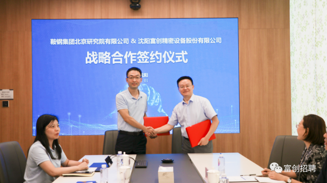 2023年9月1日,鞍鋼集團北京研究院有限公司與沈陽富創精密設備股份有限公司在沈陽舉行了《遼寧省集成電路裝備金屬零部件創新聯合體》簽約儀式。沈陽富創CTO劉楓、北京研究院CTO何毅代表雙方簽約,雙方相關領導出席簽約儀式并舉行工作會談,共同見證合作達成。