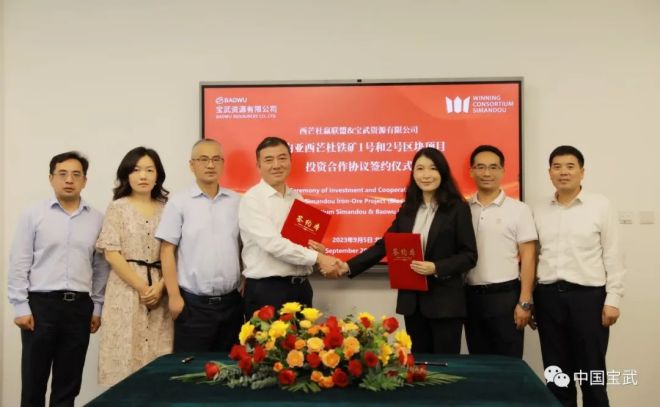 9月5日下午,寶武資源與贏聯盟控股公司(WCS)在北京簽署了西芒杜鐵礦北部區塊項目投資合作協議。中國寶武海外礦投辦主任、寶武資源黨委書記、董事長施兵和贏聯盟西芒杜項目首席執行官呂曉慧分別代表雙方簽約。