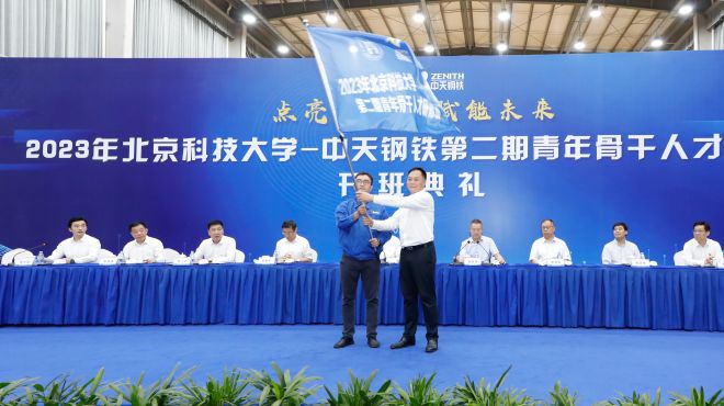 開班儀式上,北科大—中天鋼鐵協同創新中心第一期項目簽約,該中心于今年5月成立,由中國工程院院士、北科大碳中和創新研究院院長毛新平擔任主任,目前已形成第一批五項科研項目。北京科技大學實踐教學基地也于當天揭牌,中天鋼鐵將發揮產業優勢,為北科大學子提供學習實踐機會,幫助學生了解企業運作,實現產教融合、共同育才。