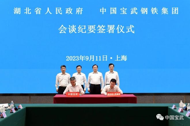 為促進雙方合作取得更好更快成效,由寶武黨委常委、總會計師兼董事會秘書朱永紅主持,雙方舉行了《會談紀要》簽署儀式。湖北省副省長盛閱春與寶武黨委常委、副總經理侯安貴分別代表雙方簽署了《會談紀要》。