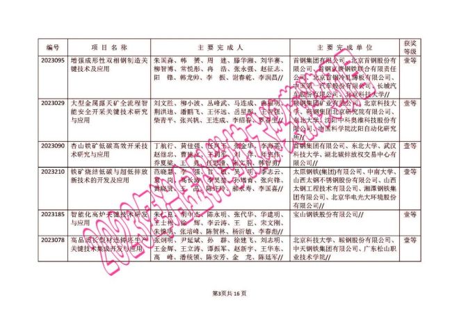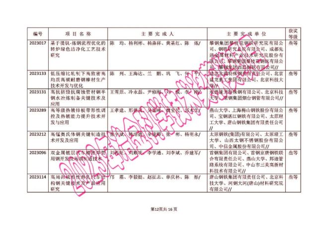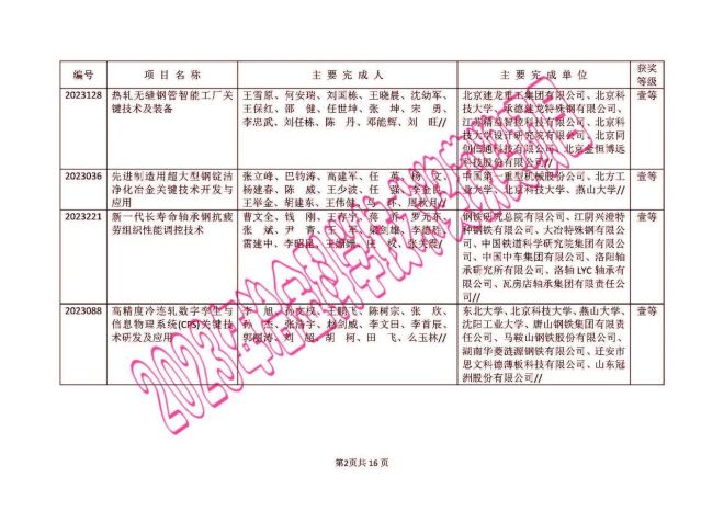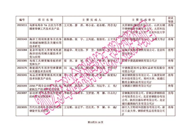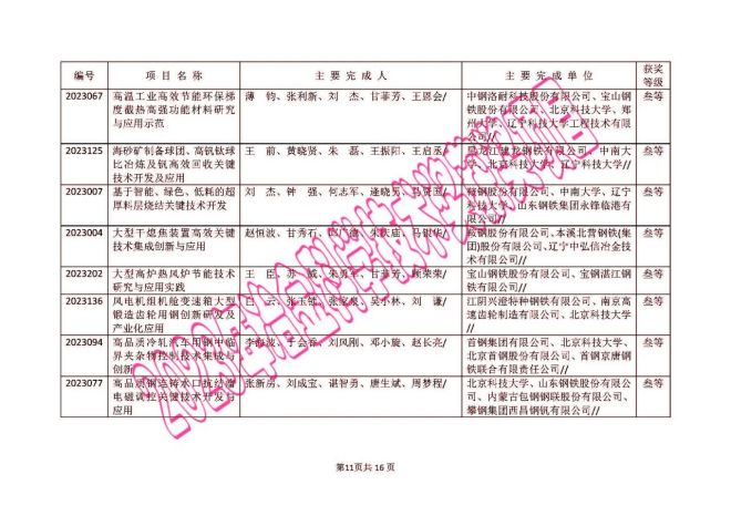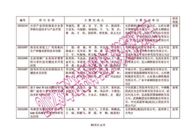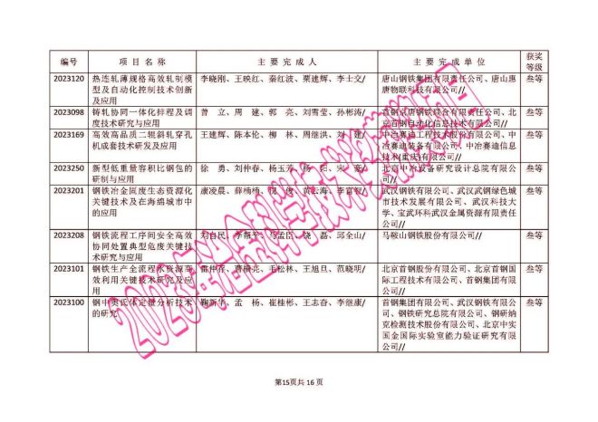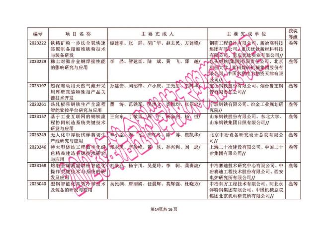 其中,承德建龍牽頭研發的《熱軋無縫鋼管智能工廠關鍵技術及裝備》榮獲一等獎,建龍川鍋牽頭研發的《高溫固體散料余熱直接回收技術開發與應用》榮獲二等獎,建龍北滿特鋼牽頭研發的《低壓縮比軋制下高致密高均質高碳耐磨鋼棒材生產技術開發與優化》、承德建龍牽頭研發的《高抗擠毀抗腐蝕管材鋼半鋼水冶煉制備關鍵技術及應用》、黑龍江建龍牽頭研發的《海砂礦制備球團、高釩鈦球比冶煉及釩高效回收關鍵技術開發與應用》榮獲三等獎。