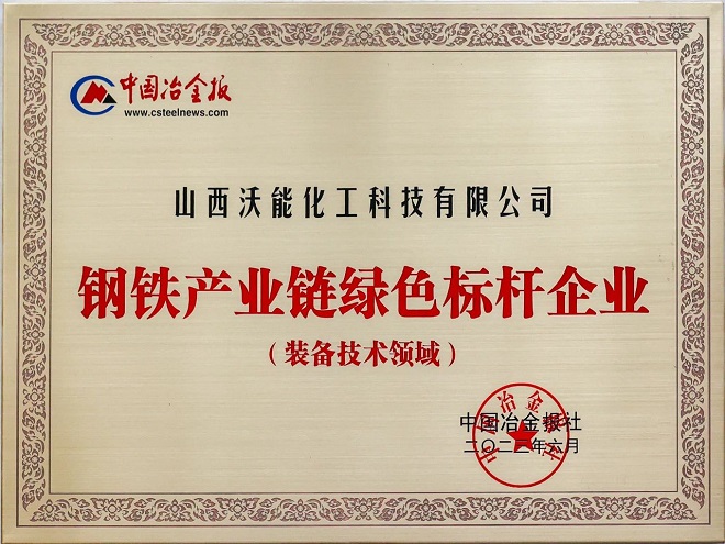 9月份,2023第四屆全國鋼鐵行業(yè)綠色低碳發(fā)展大會”在南京召開。會上,中國鋼鐵工業(yè)協(xié)會節(jié)能環(huán)保工作委員會、中國冶金報社發(fā)布2023“鋼鐵產(chǎn)業(yè)鏈綠色標(biāo)桿企業(yè)”榜單并頒獎,集團(tuán)沃能化工喜獲“鋼鐵產(chǎn)業(yè)鏈綠色標(biāo)桿企業(yè)(裝備技術(shù)領(lǐng)域)”稱號。