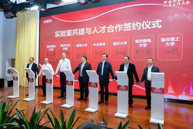 中冶賽迪黨委副書記、總經理肖鵬代表公司與重慶大學、西南大學、重慶郵電大學、重慶理工大學、重慶科技學院、重慶師范大學六所高校聯合簽署合作框架協議,將圍繞實驗室共建、科研課題共研、人才聯合培養等開展全面合作。