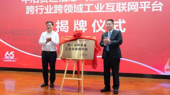 大會舉行了中國鋼鐵工業協會“低碳技術研究基地”與工業和信息化部“跨行業跨領域工業互聯網平臺”揭牌儀式,中國鋼鐵工業協會黨委副書記、副會長兼秘書長姜維、重慶市經濟和信息化委員會二級巡視員劉群生和肖學文董事長分別為基地和平臺揭牌。