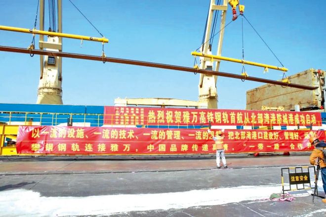 “此次雅萬高鐵鋼軌的出口是我國首次出口長定尺鋼軌,創造了特長鋼軌裝船出海的歷史。”至今,提起幾年前的出口儀式,鞍鋼國貿攀枝花進出口部門負責人依然感慨萬千,“為加快裝船效率,我們與防城港碼頭公司等單位組建專業團隊進行技術攻關,制訂多個海運、陸運和裝卸方案,配合相關單位,對防城港港口基礎設施進行升級改造,解決了長定尺鋼軌港口場地施工改造、港口吊裝設備的設計、施工、倒運等多項難題,突破了國內長定尺鋼軌出口海外安全運輸的‘瓶頸’。”