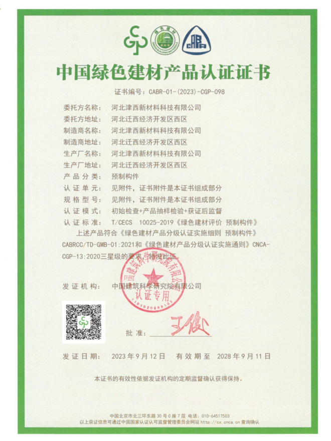 綠色建材產(chǎn)品認證是國家住建部、工信部、市場監(jiān)督管理總局聯(lián)合推動的一項高含金量的國家級建材評價審核工作,由中國建筑科學(xué)研究院有限公司認證中心組織開展,是對企業(yè)所提供的產(chǎn)品通過綠色健康認證的有力證明,也是當前住房和城鄉(xiāng)建設(shè)領(lǐng)域綠色建材有關(guān)應(yīng)用要求主要的采信范圍。“中國綠色建材產(chǎn)品”三星級認證,要求產(chǎn)品質(zhì)量滿足國標優(yōu)等品或優(yōu)于國標,是生產(chǎn)高標準產(chǎn)品品質(zhì)的證明。