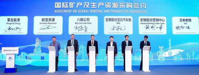 在全球集中采購簽約儀式上,八鋼所屬的國際貿易公司與歐亞資源、蒙古能源兩家全球知名供應鏈合作伙伴進行了國際礦產及生產資源簽約,簽約金額逾50億人民幣。