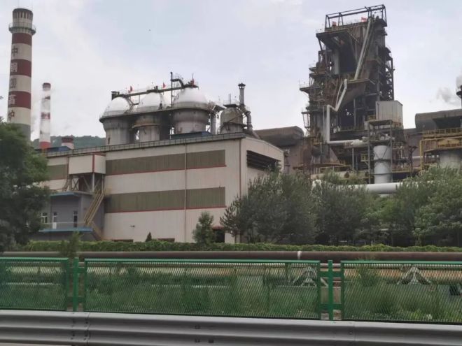 圖為山西中陽鋼鐵有限公司1號1280m3高爐1#熱風爐由內燃式改造成頂燃式后的全貌。