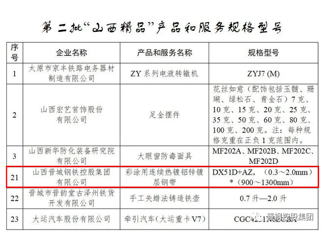 ▲第二批“山西精品”產(chǎn)品和服務(wù)規(guī)格型號