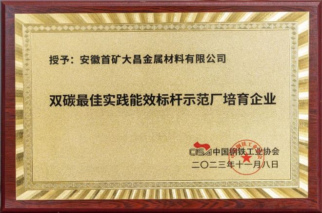 近期,中國鋼鐵工業協會節能環保工作年會暨高爐、焦爐極致能效專題技術對接會在陜西韓城舉行,會上公布了第二批雙碳最佳實踐能效標桿示范廠名單,經過企業申報、協會評審并報領導審定,全國共有 37 家企業入選第二批培育企業,六安鋼鐵控股集團旗下安徽首礦大昌金屬材料有限公司順利入選。