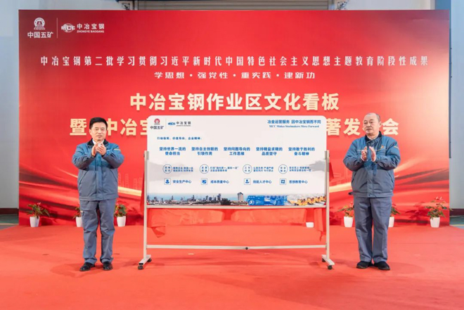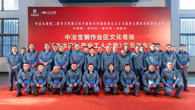 中冶寶鋼黨委以深入開展學(xué)習(xí)貫徹習(xí)近平新時代中國特色社會主義思想主題教育為契機,堅持以人民為中心的發(fā)展思想,以提高基層管理能力、增強作業(yè)區(qū)核心功能為目標,探索實施作業(yè)區(qū)文化建設(shè),形成了具有中冶寶鋼特色的作業(yè)區(qū)文化看板和展現(xiàn)中冶寶鋼人忠誠敬業(yè)擔(dān)當(dāng)?shù)摹吨幸睂氫摦a(chǎn)業(yè)工人之歌》專著,取得了深入開展主題教育的階段性成果。發(fā)布會上,公司黨委號召各級黨組織和全體員工,認真貫徹中國五礦“五大核心要義”,充分發(fā)揮作業(yè)區(qū)安全生產(chǎn)中心、成本質(zhì)量中心、技能人才中心、思想教育中心的重要作用,加速領(lǐng)跑冶金運營服務(wù)高質(zhì)量發(fā)展,努力把中冶寶鋼打造成為鋼鐵企業(yè)最廣泛最緊密最深厚的戰(zhàn)略力量。