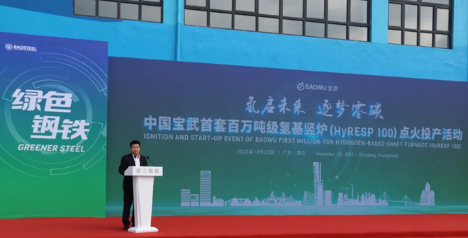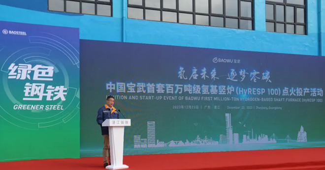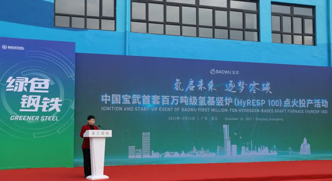 “我宣布,中國寶武首套百萬噸級氫基豎爐點(diǎn)火投產(chǎn)!”12月23日,中國寶武黨委書記、董事長胡望明下達(dá)點(diǎn)火令并宣布項(xiàng)目點(diǎn)火投產(chǎn),標(biāo)志著國內(nèi)首套百萬噸級氫基豎爐正式投入工業(yè)化運(yùn)營,更標(biāo)志著以寶武為代表的中國鋼鐵工業(yè)即將開啟探索零碳綠色轉(zhuǎn)型發(fā)展的嶄新篇章。