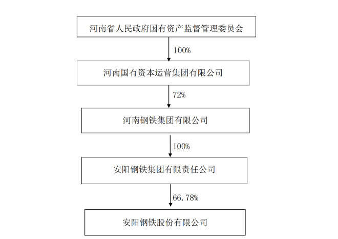 本次股權轉讓前,河南鋼鐵集團未持有公司股票;河南資本集團未 直接持有公司股票,通過其全資子公司、公司控股股東安鋼集團持有公 司人民幣普通股股份 1,918,308,486 股,占公司股份總數的 66.78%。股權結構如下圖所示: