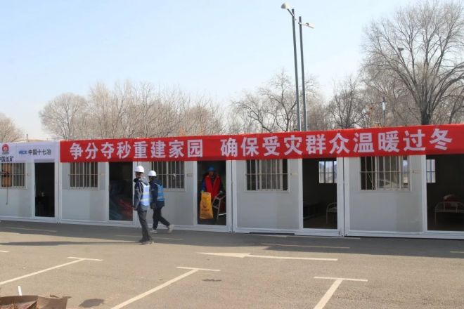 2023年12月18日23時59分,甘肅省臨夏州積石山縣發(fā)生6.2級地震,與積石山縣接壤的青海民和縣災(zāi)情嚴重,災(zāi)情牽動人心。12月21日上午10時,中國十七冶接到中國五礦、中冶集團馳援青海救災(zāi)指令,第一時間派出以公司副總經(jīng)理周金龍為隊長的抗震救災(zāi)緊急支援工作隊,24小時內(nèi)全部完成100套裝配式活動板房安裝。考慮到受災(zāi)地區(qū)高寒氣候、晝夜溫差大、物資緊缺情況下的群眾安置問題,公司分三批采購煤炭23.7噸、取暖爐子及水壺300個、折疊床及用品1500件、大衣140件、米面糧油750件及飲用水等生活物資,并緊急劃撥黨費和工會經(jīng)費50萬元,確保現(xiàn)場有效運轉(zhuǎn)。
