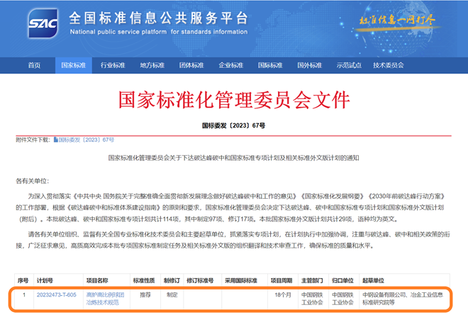 日前,國家標準化管理委員會發布《關于下達碳達峰碳中和國家標準專項計劃及相關標準外文版計劃的通知》,包含了114項雙碳國家標準,以及29項外文版標準(英文)。中鋼設備申報的《高爐高比例球團冶煉技術規范》成功獲批,并將在18個月內同步推出中文版與外文版。