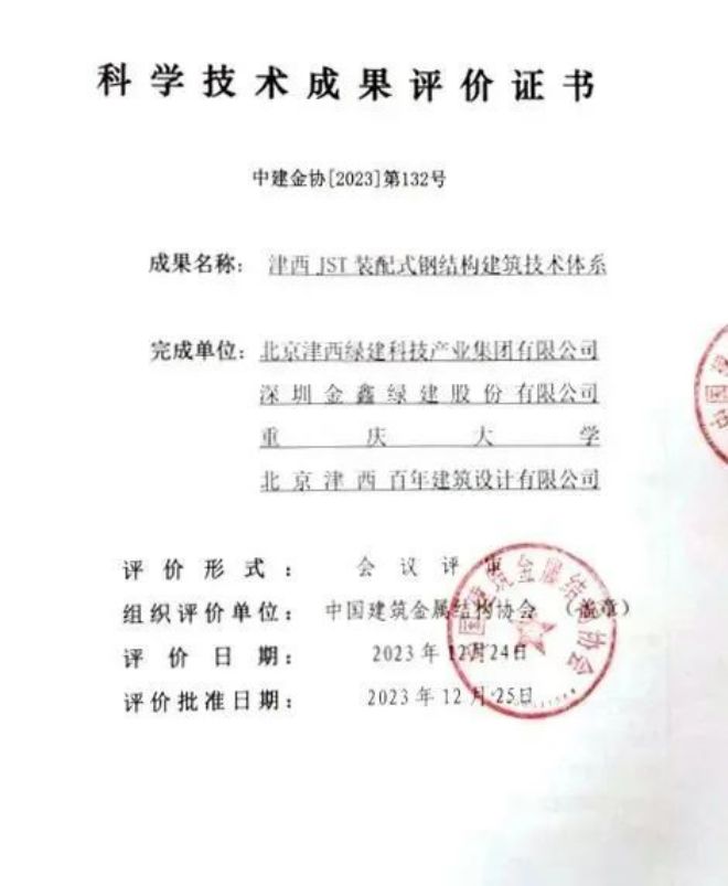 2023年12月24日,中國建筑金屬結(jié)構(gòu)協(xié)會在唐山組織召開了“津西JST裝配式鋼結(jié)構(gòu)建筑技術(shù)體系”科技成果評價會。