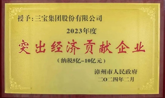 2023年,在市委、市政府的堅強領導下,全市上下深入開展“產(chǎn)業(yè)發(fā)展項目建設提升年”活動和“七比一看”競賽取得豐碩成果。三寶集團及旗下5家公司被漳州市人民政府授予“突出經(jīng)濟貢獻企業(yè)”榮譽稱號。