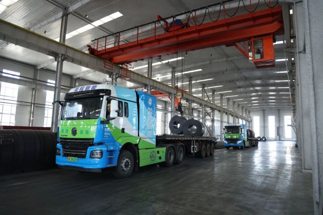 在原料和成品鋼材的氫能運輸比例大幅提升的同時,集團廠內物料短倒運輸也開啟了由國六燃油車向氫能車運輸的場景升級之路,3月份首批次升級之后,將實現30%以上的運力轉為氫能運輸。