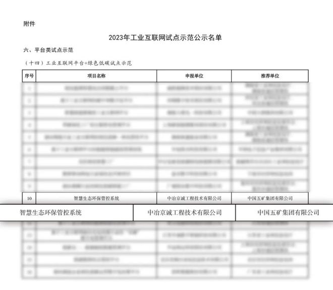 3月21日,工業(yè)和信息化部正式公布了2023年工業(yè)互聯(lián)網(wǎng)試點示范項目名單,中冶京誠“智慧生態(tài)環(huán)保管控系統(tǒng)”成功入選工信部2023年工業(yè)互聯(lián)網(wǎng)試點示范項目,該項目為中國五礦本次推薦申報的唯一入選項目。