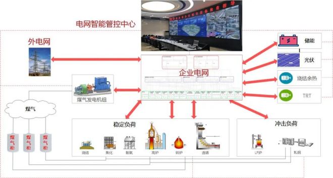 實現(xiàn)企業(yè)電網(wǎng)源網(wǎng)荷自動化協(xié)調控制,為千萬噸級鋼鐵企業(yè)每年節(jié)約費用約3億元,減少CO?排放約0.033噸/噸鋼,減少企業(yè)電網(wǎng)運維人員90%,經(jīng)濟和社會效益顯著,已在豐南鋼鐵、石橫特鋼、臨沂鋼鐵等多個項目中得到成功推廣和應用,對進一步提升鋼鐵行業(yè)節(jié)能減排具有重大意義。同時,將分布式光伏、分散式風電、高效熱泵、新型儲能、余熱余能發(fā)電等新能源系統(tǒng)納入電網(wǎng)智能化系統(tǒng)的管控范圍,保證新能源發(fā)電完全消納利用,構建清潔低碳、安全高效的新型電力系統(tǒng),實現(xiàn)企業(yè)新能源自發(fā)自用,余電不上網(wǎng),大幅節(jié)省基本電費。