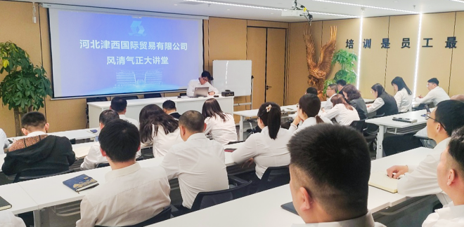 奏廉潔從業(yè)音,揚(yáng)干事創(chuàng)業(yè)風(fēng)。為扎實(shí)推進(jìn)風(fēng)清氣正主題活動(dòng),近日,津西國(guó)貿(mào)舉辦風(fēng)清氣正大講堂,引導(dǎo)公司中基層干部及重點(diǎn)崗位人員樹立正確的價(jià)值觀和事業(yè)觀,進(jìn)一步夯實(shí)廉潔從業(yè)思想基礎(chǔ)和文化根基,營(yíng)造風(fēng)清氣正良好氛圍。