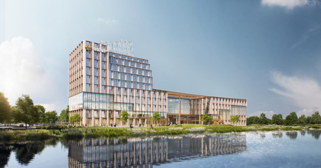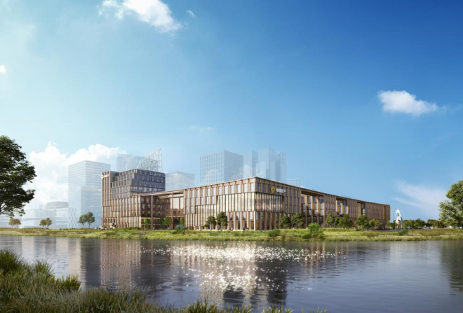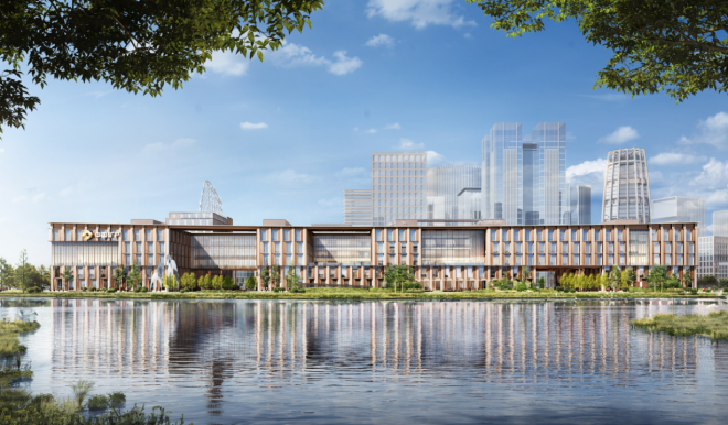 中國礦產(chǎn)資源集團有限公司雄安總部項目位于河北雄安新區(qū)啟動區(qū)中谷甲1號。項目利用地塊相鄰優(yōu)勢形成水平線條的延展性,天際線微微上揚,配合建筑頂部帆型風電裝置,呈“揚帆啟航”之勢,并借助周邊臨水、近綠的景觀優(yōu)勢,形成和諧、生態(tài)的景觀效果。