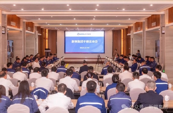 4月19日,新鋼集團召開干部宣布會。中國寶武黨委常委、副總經理高建兵以視頻方式出席會議并講話,新鋼集團黨委書記、董事長劉建榮主持會議。中國寶武鋼鐵制造業發展部、黨委組織部,新鋼集團領導班子成員、總經理助理、二級單位黨政負責人參加會議。