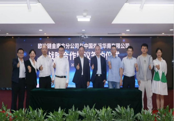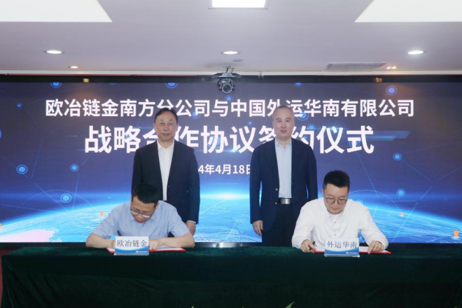 4月18日下午,中國(guó)寶武歐冶鏈金南方分公司與中國(guó)外運(yùn)華南公司于廣州簽訂2024年度戰(zhàn)略合作協(xié)議,進(jìn)一步深化業(yè)務(wù)合作,攜手推動(dòng)綠色循環(huán)經(jīng)濟(jì)的高質(zhì)量發(fā)展。歐冶鏈金黨委委員、高級(jí)副總裁陶煒,南方分公司負(fù)責(zé)人,中國(guó)外運(yùn)華南公司相關(guān)負(fù)責(zé)人等出席并見(jiàn)證簽約儀式。