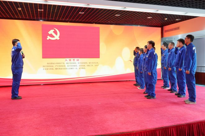 “我志愿加入中國共產黨,擁護黨的綱領,遵守黨的章程……”在與會人員的見證下,領誓人周俊杰帶領全體新黨員面向鮮紅的黨旗,右手握拳齊肩舉起,錚錚誓言擲地有聲,表達了對黨的崇高信仰與無限忠誠以及為黨的事業奮斗終生的堅定決心。