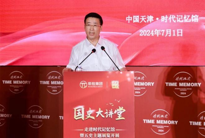 張榮華致歡迎辭。她指出,榮程集團(tuán)與中華人民共和國(guó)國(guó)史學(xué)會(huì)戰(zhàn)略合作,通過(guò)改陳升級(jí),合力打造的這座“五史”館,承載了無(wú)數(shù)先輩留下的輝煌和歷史,更承載著一代人傳承紅色基因、講好紅色故事的堅(jiān)守。新時(shí)代學(xué)習(xí)“五史”是堅(jiān)持和發(fā)展中國(guó)特色社會(huì)主義、把黨和國(guó)家各項(xiàng)事業(yè)繼續(xù)推向前進(jìn)的必修課。對(duì)“五史”的學(xué)思悟踐,就是為了更好地汲取紅色智慧,深刻認(rèn)識(shí)新時(shí)代,把握新時(shí)代,奮進(jìn)新時(shí)代,把握歷史大勢(shì),啟迪昭示未來(lái)。她希望牢牢把握高質(zhì)量發(fā)展首要任務(wù),為紅色文化注入現(xiàn)代基因,推進(jìn)中華文化和中國(guó)精神凝結(jié)升華;她希望充分利用好“五史館”這一重要學(xué)習(xí)教育載體,通過(guò)深入學(xué)習(xí)貫徹習(xí)近平文化思想,牢記習(xí)近平總書(shū)記賦予我們的使命任務(wù),傳承城市歷史文脈,做好紅色文化資源保護(hù),讓紅色記憶代代傳承,在推動(dòng)文化傳承發(fā)展上善作善成,奮力譜寫(xiě)中國(guó)式現(xiàn)代化天津篇章。她希望以時(shí)代記憶五史館建成為契機(jī),面向未來(lái),更加走好新時(shí)代的長(zhǎng)征路,主動(dòng)從黨史學(xué)習(xí)中激發(fā)信仰、獲得啟發(fā)、汲取力量,不斷增強(qiáng)做中國(guó)人的志氣、骨氣、底氣,樹(shù)立為祖國(guó)為人民永久奮斗、赤誠(chéng)奉獻(xiàn)的堅(jiān)定理想,自覺(jué)用中華優(yōu)秀傳統(tǒng)文化、革命文化、社會(huì)主義先進(jìn)文化培根鑄魂、啟智潤(rùn)心,深刻理解把握時(shí)代潮流和國(guó)家需要,在傳承創(chuàng)新中不忘初心,賡續(xù)紅色血脈,筑牢前進(jìn)之魂,助力中國(guó)式現(xiàn)代化偉大實(shí)踐!