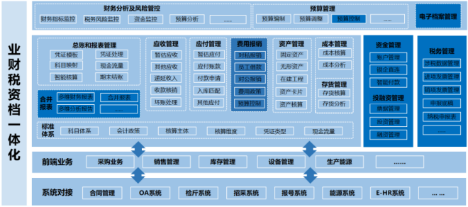 本次項目建設以促進業財深度融合、打通內外部系統連接、提升數字化率、減少數據落地為目標,實現業、財、稅、資、檔一體化管理。系統包括總賬、資金、稅務、預算、費用報銷、成本、電子會計檔案、購銷、庫存等近30個模塊應用,同時配套開展檢斤系統、報號系統、云招采、合同管理、設備管理系統、E-HR、OA、MES、能源系統等升級及對接。實現與集團統一平臺、對標補齊的同時,打造資金、稅務、預算、費用報銷等集團標桿試點應用。