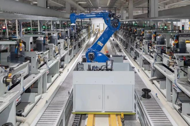 ▲淮安基地智能機(jī)械臂工作中