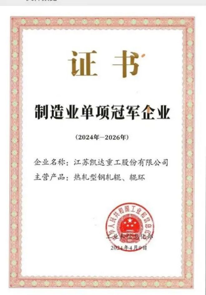 制造業(yè)單項(xiàng)冠軍企業(yè)證書(shū)的獲得,標(biāo)志著凱達(dá)重工在高質(zhì)量發(fā)展方面取得了非凡的業(yè)績(jī)和最高榮譽(yù),在加快推動(dòng)新質(zhì)生產(chǎn)力發(fā)展中將起到領(lǐng)頭羊作用。