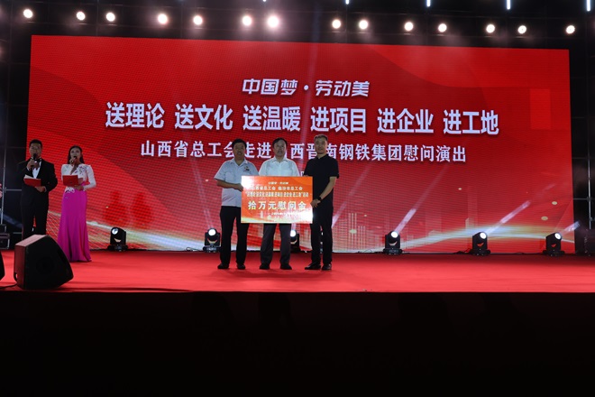 8月17日,山西省總工會“送理論、送文化、送溫暖,進項目、進企業、進工地”三送三進慰問演出走進晉南鋼鐵集團,為奮戰在一線的員工送上親切的關懷和精彩的文化盛宴,同時山西省總工會和臨汾市總工會為該集團贈送慰問金。