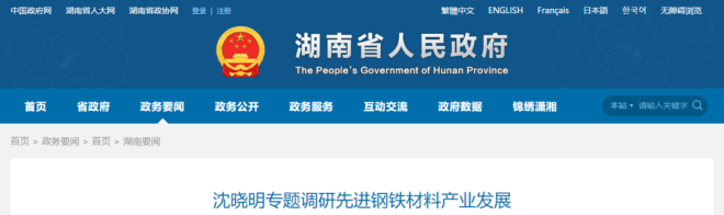 從湖南省人民政府網站獲悉,8月21日,湖南省省委書記沈曉明在湘潭調研先進鋼鐵材料產業發展。他強調,要認真學習貫徹黨的二十屆三中全會以及習近平總書記考察湖南重要講話和指示精神,堅持改革創新,強化市場導向,在打造高端產品、拉長產業鏈條上下更大功夫,推動湖南先進鋼鐵材料產業發展邁上新臺階。