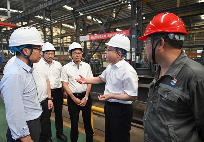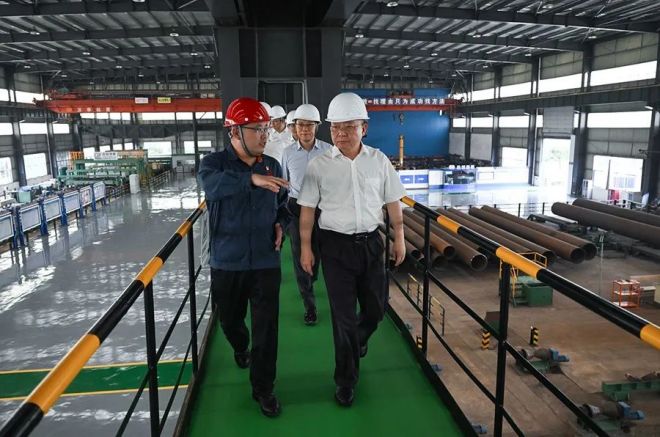 沈曉明先后來到中冶京誠(湘潭)重工設備有限公司、湘潭永達機械制造股份有限公司、湖南湘鋼金屬材料科技有限公司、湖南勝利湘鋼鋼管有限公司,了解生產經營、工藝創新、市場開拓及產業鏈上下游協同等情況。