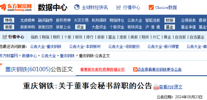 《重慶鋼鐵:關于董事會秘書辭職的公告》