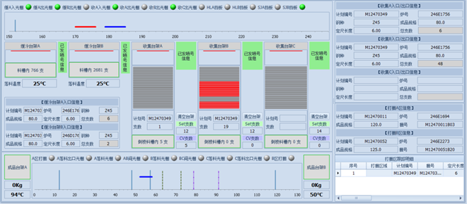 全流程逐支跟蹤。通過集成視覺AI識別、電氣控制與檢測、數學模型、邏輯推理、激光噴碼/讀碼等相關技術,構建基于多模態算法的逐支跟蹤技術,多模態算法以視覺AI識別結果為主控信號,以電氣控制與檢測信號為輔控信號,以數學模型和邏輯推理為基線,實現互冗余、互驗證、高魯棒的中大棒全流程逐支跟蹤。棒材在冷區的生產過程異常復雜,其中砂輪鋸區尤為突出,成把棒材在鋸切過程會經歷鋸頭、鋸尾、取樣、鋸倍尺、鋸定尺等操作過程,鋸切后還會有多種運行路徑。基于視覺“AI+”技術可適配上述生產工況,確保逐支跟蹤的準確和穩定。