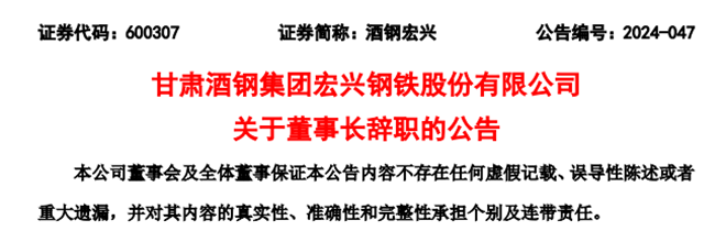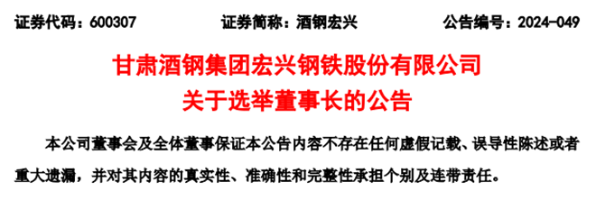 近日,酒鋼宏興發布了《酒鋼宏興:酒鋼宏興關于董事長辭職的公告》(以下簡稱《公告一》)和《酒鋼宏興:酒鋼宏興關于選舉董事長的公告》(以下簡稱《公告二》)。