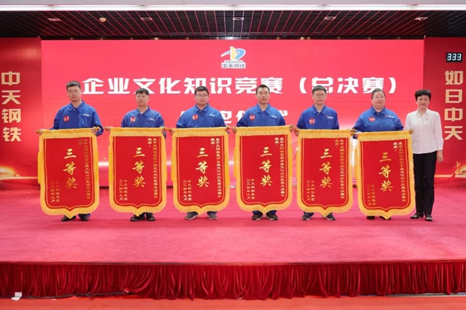 本次活動公布了企業文化宣講系列活動獲獎名單,中天南通數控中心設備口黨支部、二軋廠黨支部獲得企業文化知識競賽一等獎,中天特鋼燒結廠成逸卿、中天淮安黨群工作處王雨獲得宣講員比賽一等獎。活動還表彰了10個企業文化優秀小故事(案例)和6個企業文化宣貫活動優秀組織獎。