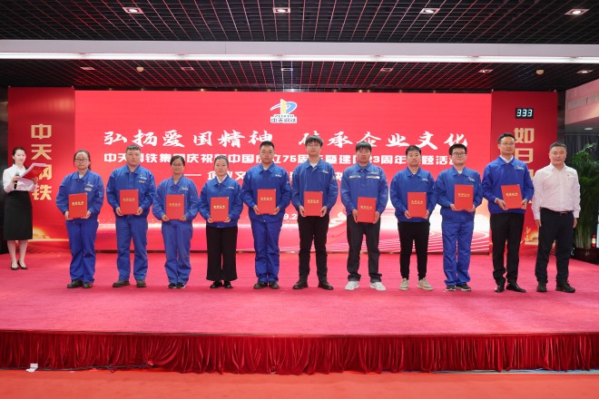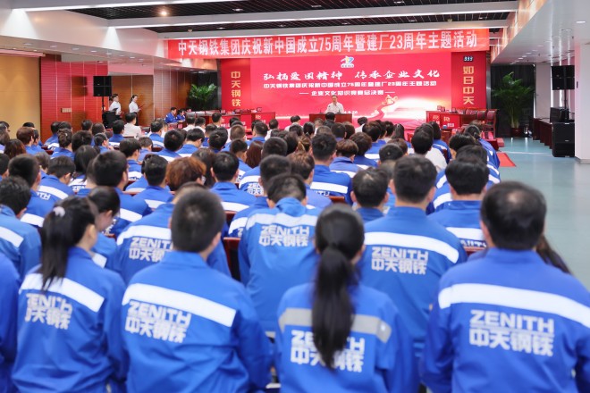 9月26日,中天鋼鐵集團慶祝新中國成立75周年暨建廠23周年主題活動盛大舉行。中天鋼鐵集團董事局主席、總裁、黨委書記董才平勉勵全員要樹立“文化興企”的理念,傳承和弘揚優秀中天文化,在全集團內掀起企業文化建設新浪潮,共同書寫中天鋼鐵新的輝煌篇章。