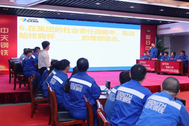 本次競賽設有必答題、搶答題、風險題三種類型,考題涵蓋《中天鋼鐵集團企業文化綱領手冊(V2.0)》等內容?,F場,參賽選手信心滿滿、全情投入,在比拼知識儲備的同時,更凸顯團隊的謀略和配合,現場觀眾不時報以熱烈掌聲。